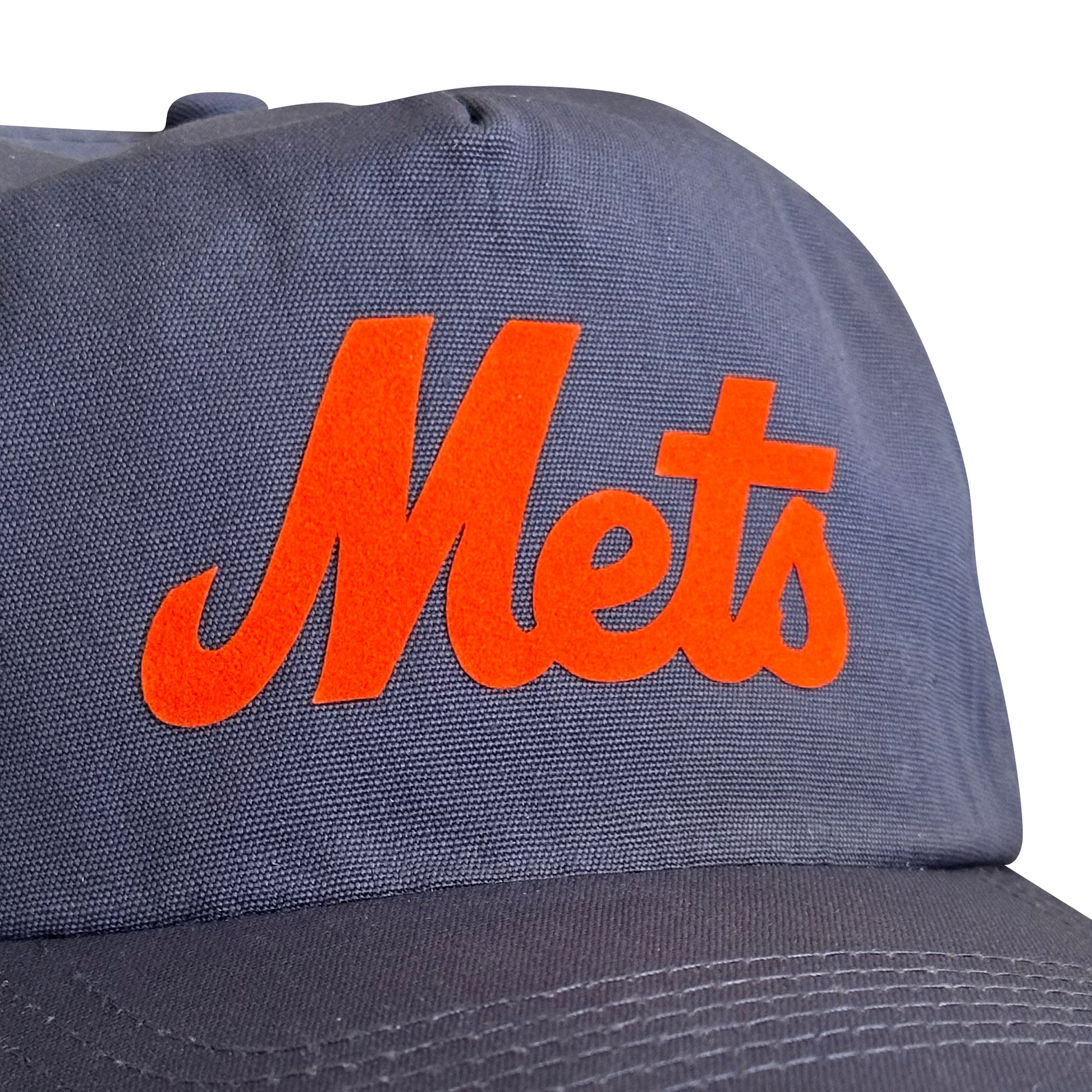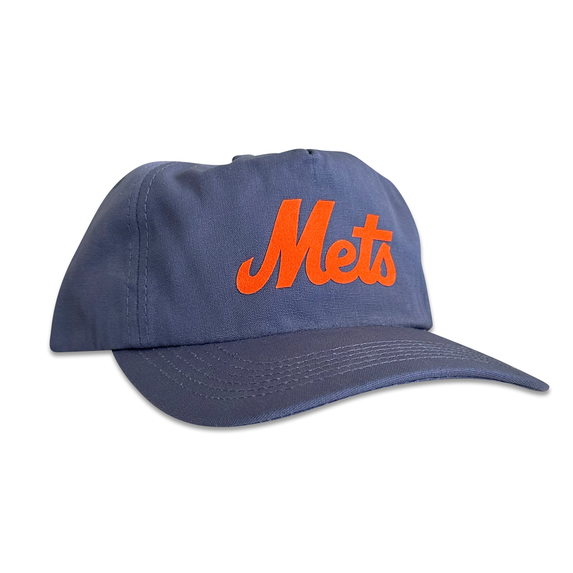 A hat so radical that Mr. Met would give it to his mama. Channel your inner Shea Stadium and scoop up this vintage inspire New York Mets snapback hat. Made from an organic cotton fabric featuring a custom JI Creative flocked patch. Enjoy friends!