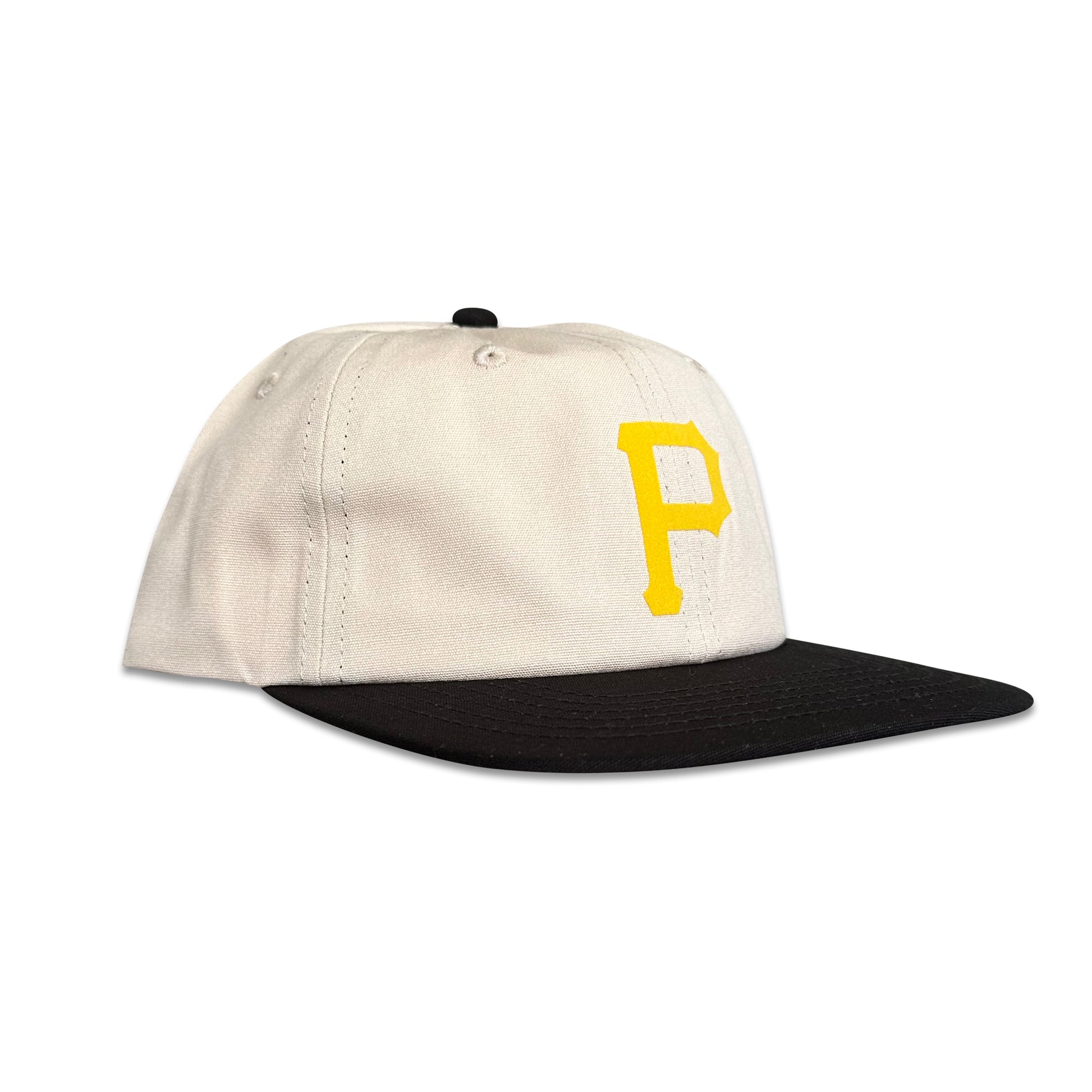 This vintage-inspired Pittsburgh Pirates hat is a sure fire....homerun. Damn, that was lame. Anyway, it's made from comfy organic cotton featuring a custom-designed flocked patch. A cool two-tone hat that sits great on any shaped head.